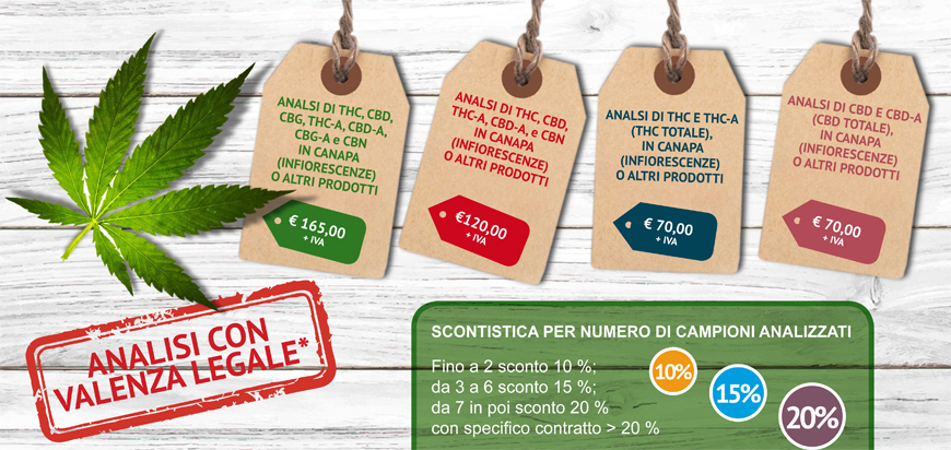 Analisi di THC, CBD, THC-A, CBD-A, e CBN al prezzo di listino: € 120,00